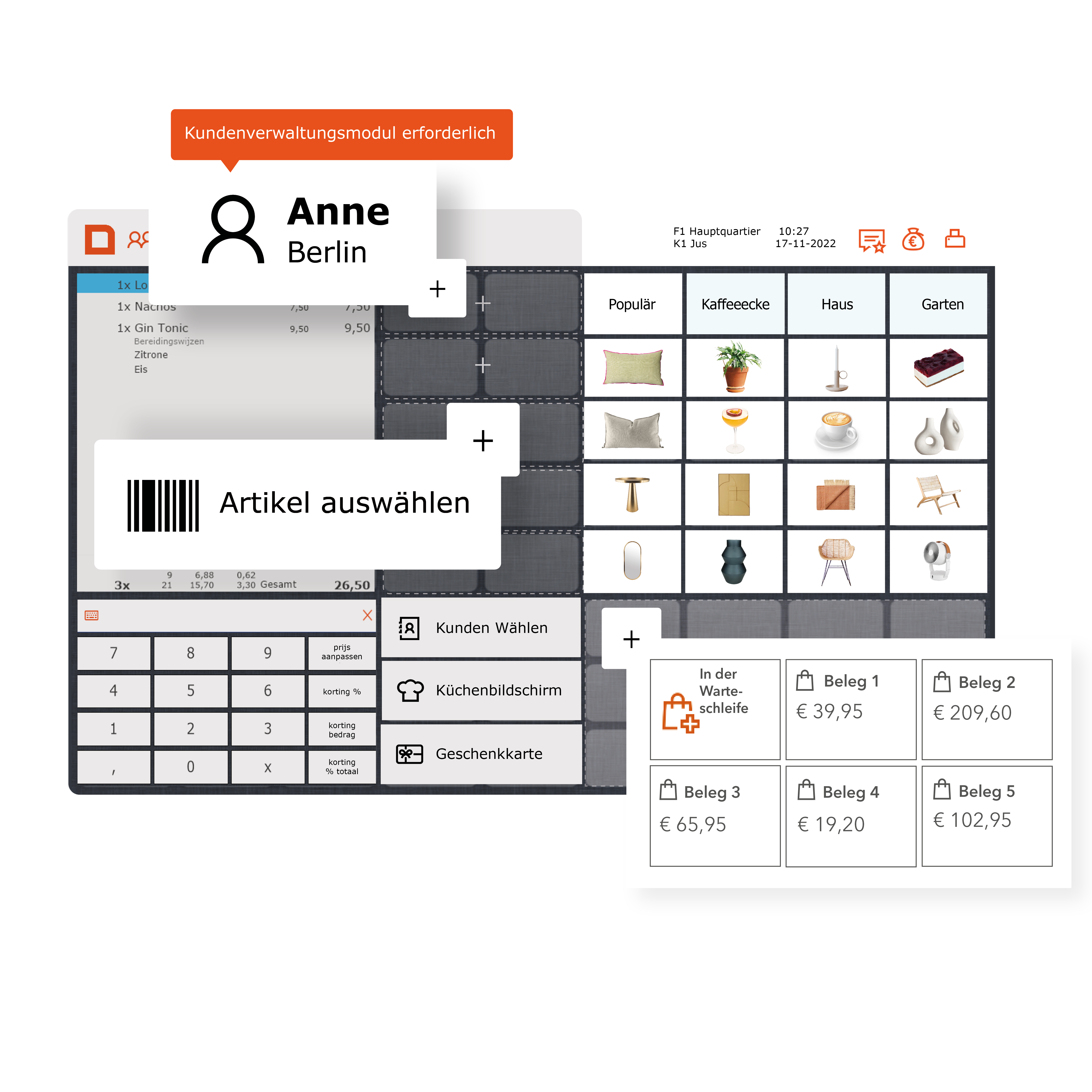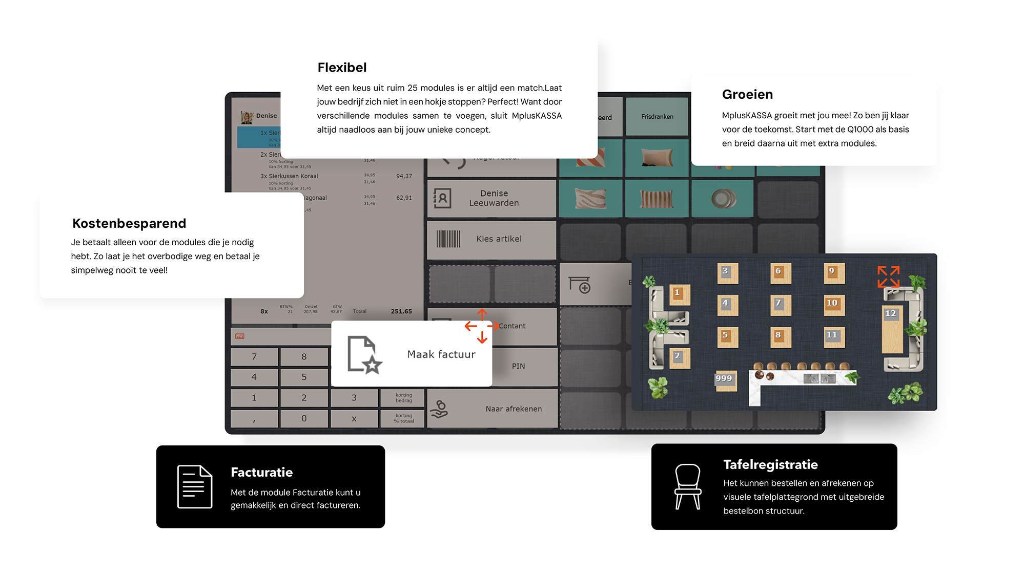 Jede Gruppe von Kassenfunktionen bildet zusammen ein Modul. Mit den Funktionalitäten, die Sie hinzufügen möchten, bauen Sie selbst die ideale Kasse. Auf diese Weise schaffen wir eine Kasse, die perfekt auf Ihre Bedürfnisse zugeschnitten ist. Mit dem Hinzufügen eines Moduls schalten Sie sofort neue Funktionen frei.